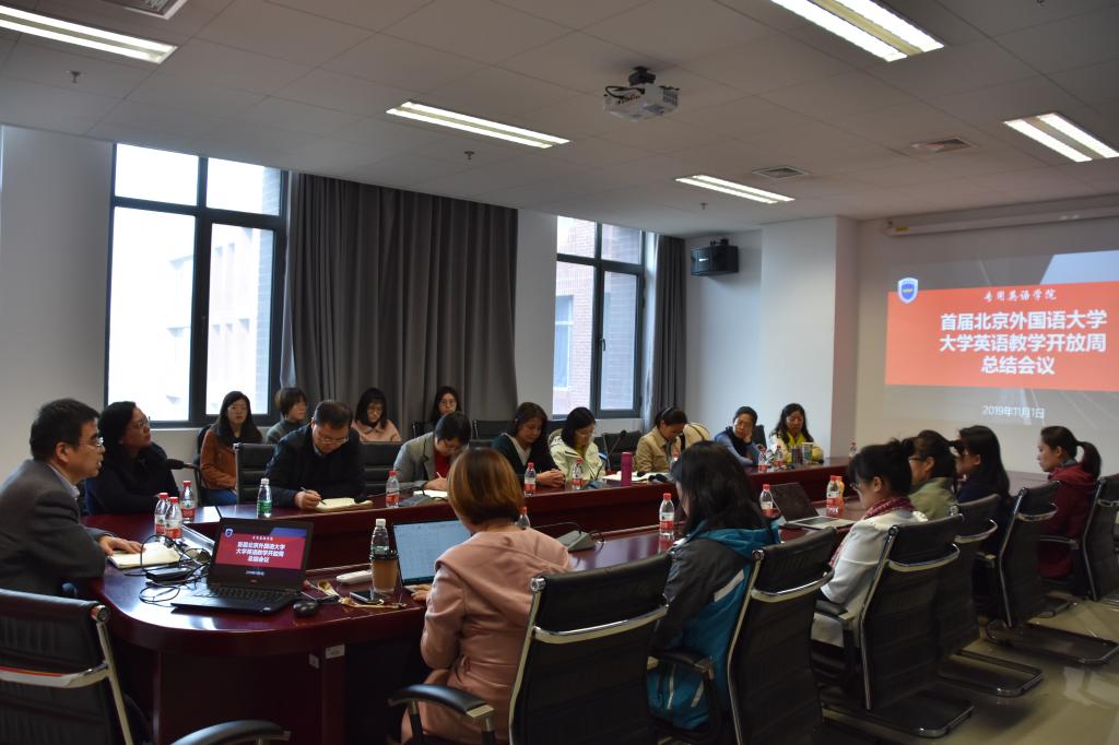 11月1日下午,ballBET贝博BB艾弗森在西校区国际大厦1016会议室召开“首届北京外国语大学大学英语教学开放课堂暨研讨会”总结会。教务处处长李莉文、外研社高等英语教育出版分社社长助理冯涛、ballBET贝博BB艾弗森常务副院长蔡鸿、副院长仵胜奇及学院参加开放课堂的教师代表共计23人参加了会议。会议由蔡鸿主持。