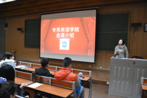 为认真贯彻落实新时代全国高等学校本科教育工作会议精神,提升非英语的外语专业学生的学习能力和学习水平,帮助学生做好即将开始的下学期大学英语的选课工作,在学校教务处统一领导和支持下,贝博官网于12月12日下午4:30在逸夫楼第一阶梯教室组织召开全校大学英语培养方案宣讲会。此次宣讲会有亚非、俄语、德语、日语、欧语、西葡、法语及阿拉伯语等8个院系的150多名学生参加。贝博官网院长助理廖鸿婧、办公室主任匡琳琳,以及学院教学办公室庄双和窦茹苑老师参加了本次宣讲会。此次会议由匡琳琳主持。
