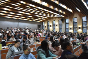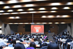 为认真贯彻落实新时代全国高等学校本科教育工作会议精神,对标刚刚结束的学校本科教学工作会议要求,提升英语双学位/双专业本科生的学习能力和学习水平,帮助学生做好即将开始的下学期英语双学位/双专业的选课工作,在学校教务处统一领导和支持下,贝博官网于12月5日下午4:30在东校园逸夫楼第一阶梯教室组织召开了全校英语双学位/双专业学生培养方案宣讲会。此次宣讲会共有来自国际商学院、国际新闻与传播学院、国际关系学院、中国语言文学学院、信息科学技术学院、法学院等六个学院的300多名学生参加。贝博官网常务副院长蔡鸿、副院长仵胜奇,院长助理廖鸿婧及学院教学办公室的庄双和窦茹苑老师参加了本次宣讲会。此次会议由学院办公室主任匡琳琳老师主持。