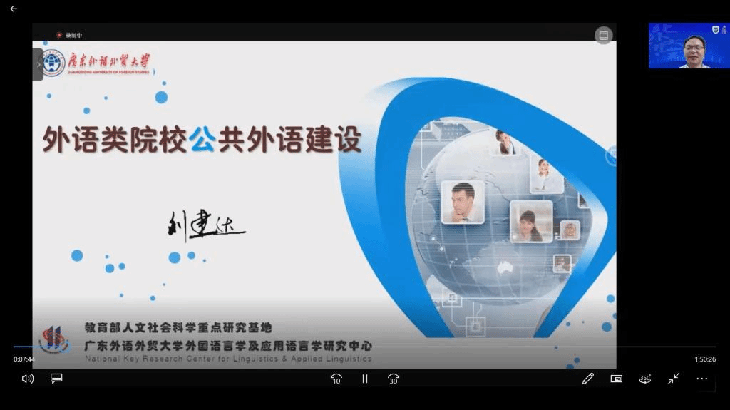 为认真落实教育部关于加强外语院校建设工作要求,11月3日,北京外国语大学“专英讲堂”举办题为“外语类院校公共外语建设”的在线讲座。讲座特邀教育部大学英语教学指导委员会副主任委员、广东外语外贸大学副校长刘建达教授主讲。来自北京外国语大学、广东外语外贸大学等国内多所大学的150多位老师参加了讲座。讲座由ballBET贝博BB艾弗森院长侯俊霞主持。