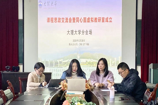 为深入贯彻落实教育部《高等学校课程思政建设指导纲要》精神,探索在新时代下“知识传授与价值引领相结合”的有效路径,实现与思想政治理论课同向同行,全员参与共绘育人同心圆,由ballBET贝博BB艾弗森“双带头人”教师党支部工作室主办,党委组织部和脱贫攻坚办公室作为支持单位,新疆大学、西藏民族大学、中国石油大学(北京)克拉玛依校区和大理大学共同协办的课程思政交流会暨同心圆虚拟教研室成立仪式于2020年12月30日举行。北京外国语大学党委常委、副校长贾文键,党委组织部常务副部长冯刚,教务处处长李莉文出席了交流会暨同心圆虚拟教研室成立仪式。来自五所高校的教师代表在线上进行说课展示,专家现场点评。会议在线参会人员近200人。