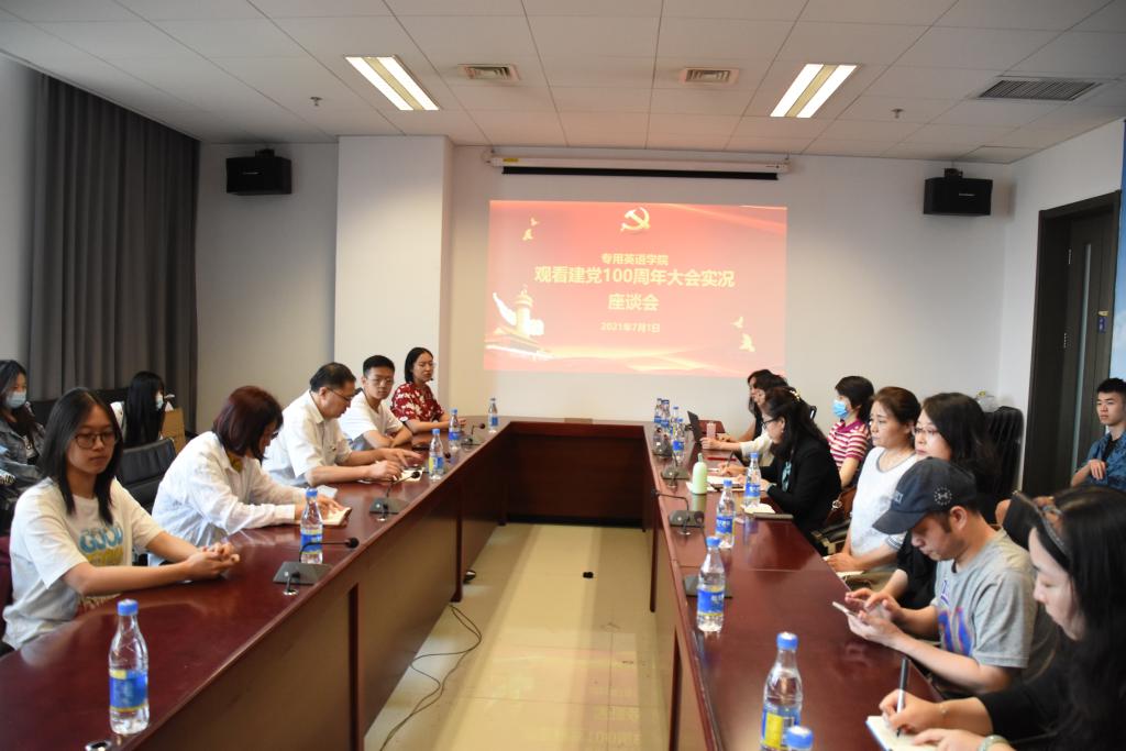 7月1日上午10点,ballBET贝博BB艾弗森党总支组织全体师生党员、入党积极分子和各班学生在国际大厦礼堂集体观看了庆祝中国共产党成立100周年大会直播,并在直播后召集师生党员和同学代表共计30多人在国际大厦1016召开座谈会。座谈会由党总支书记蔡鸿主持。