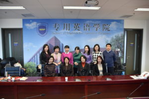 12月11日下午2:00,天津外国语大学基础课教学部主任张钡、基础教学部大学英语教研室主任李春侠等一行5人前来贝博官网调研。会议在北外大厦1016会议室举行, 常务副院长蔡鸿,院长助理廖鸿婧、学院教研室主任、课型组长及教师代表叶如帆、蒋岳春、杨华、王红欣、文圣参加了调研座谈会,会议由廖鸿婧主持。