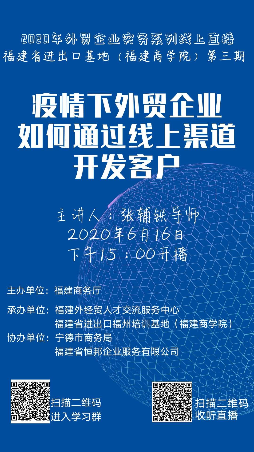 2020年6月16日助力万企线上培训第三期:疫情下外贸企业如何通过线上渠道开发客户